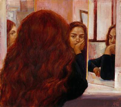 Λάδι σὲ λινὸ κολλημένο σὲ ξύλο